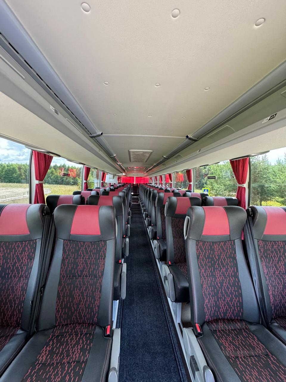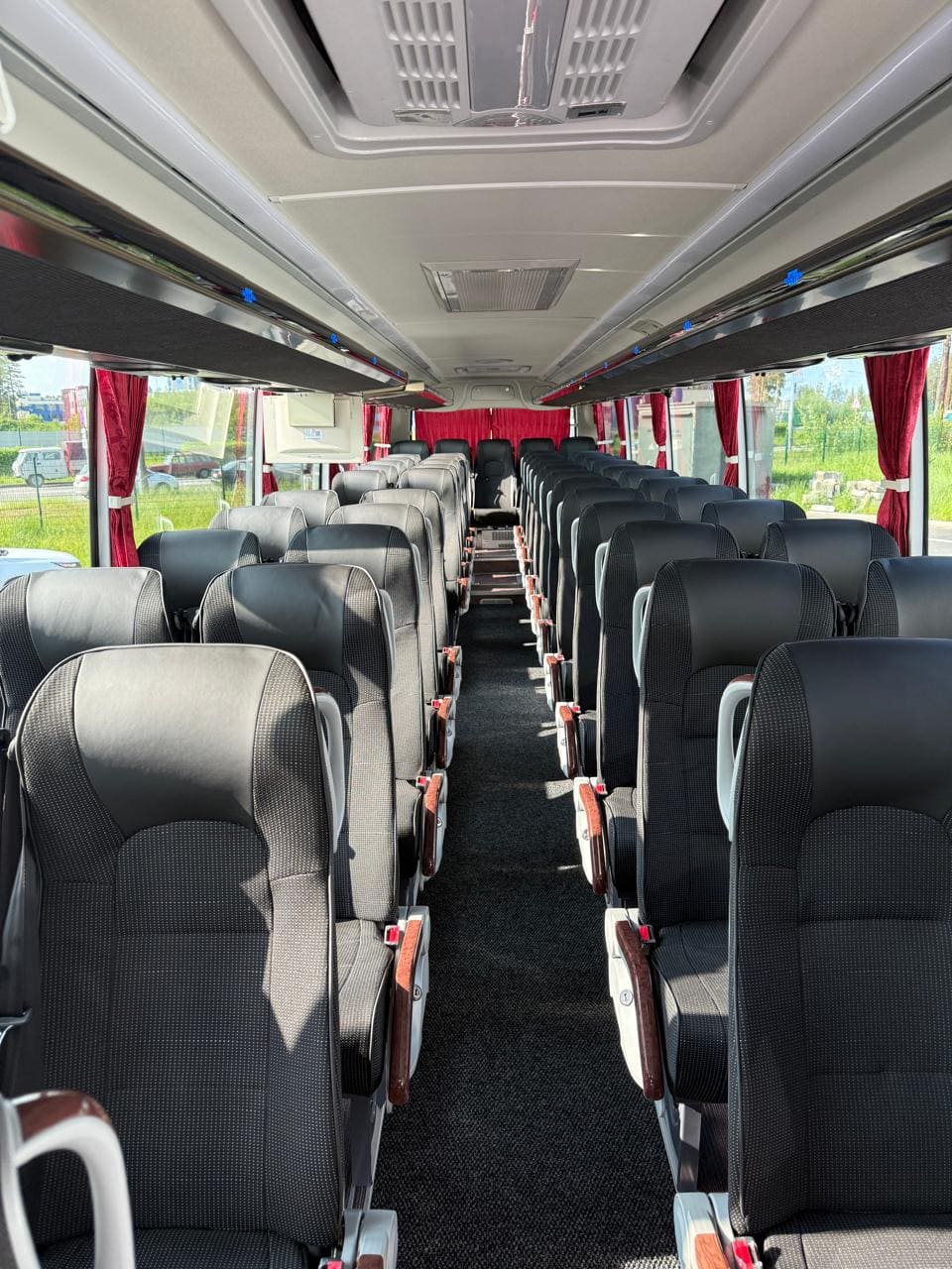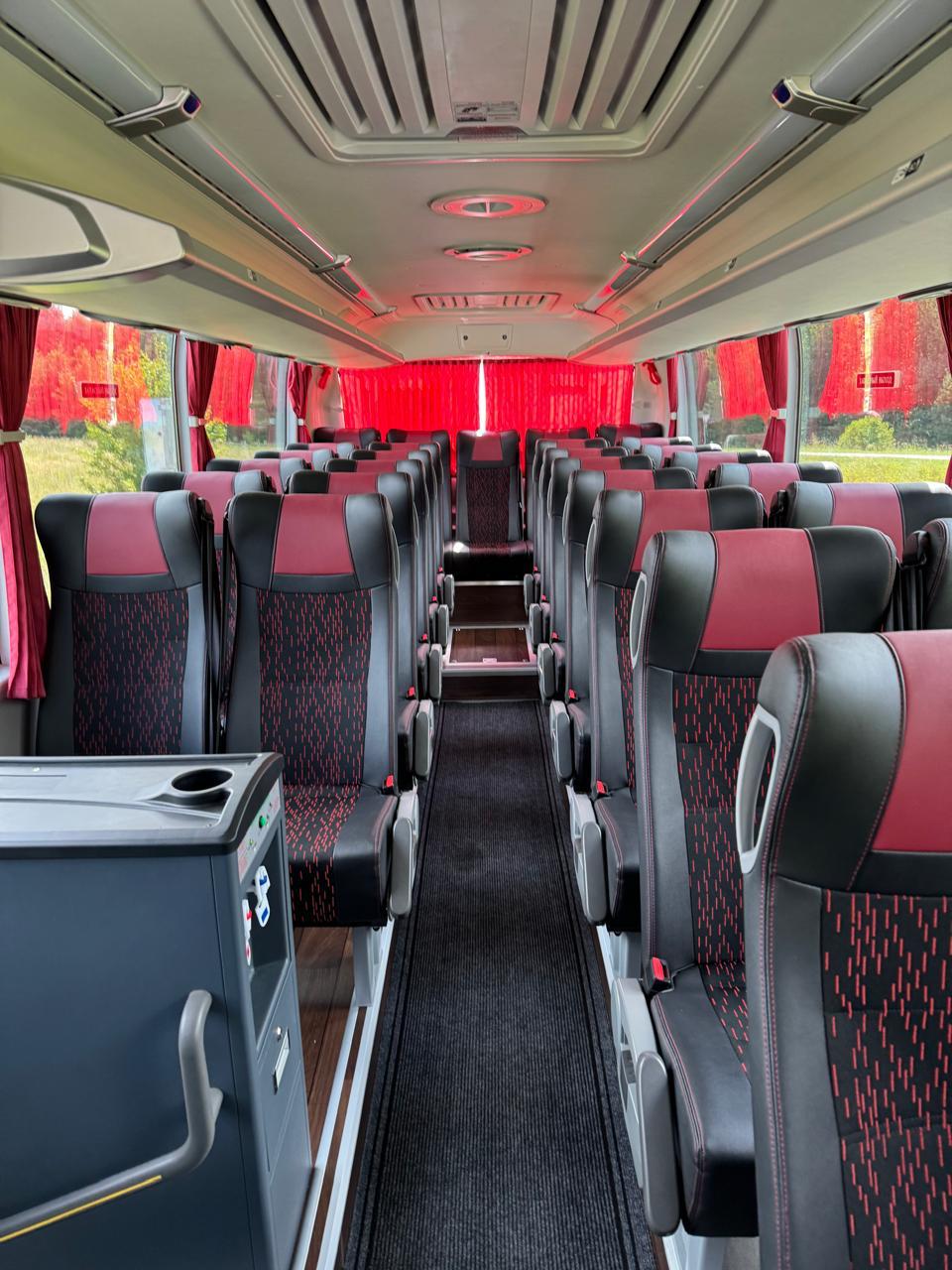- Безопасность: Автобус оснащен современными ремнями безопасности на каждом сиденье, а также системами контроля за состоянием водителя, что значительно повышает уровень безопасности в пути.